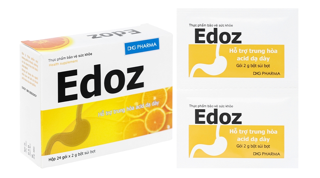 Bột sủi bọt Edoz DHG Pharma hỗ trợ trung hòa acid dạ dày.