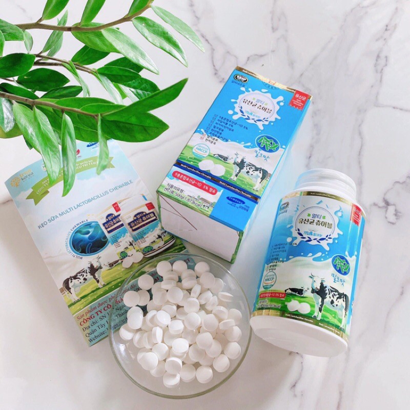Đường nho tinh khiết, vi khuẩn có lợi 5% (lactobacillus acidophilus, lactobacillus plantarum, lactobacillus casei, bifidobacterium longum, streptococcus thermophilus), fructose oligo saccharide 1%, chất xơ, xylitol 5%, sữa bột 2%, sữa tách kem 1%, canxi từ sữa, canxi cacbonat, dextrin 5%, sorbitol, Carbonhydrate, hương sữa (hương tổng hợp), hương saita (hương tổng hợp), chất điều chỉnh độ acid (axit citric, axit malic), chất chống đóng vón (magie stearate).